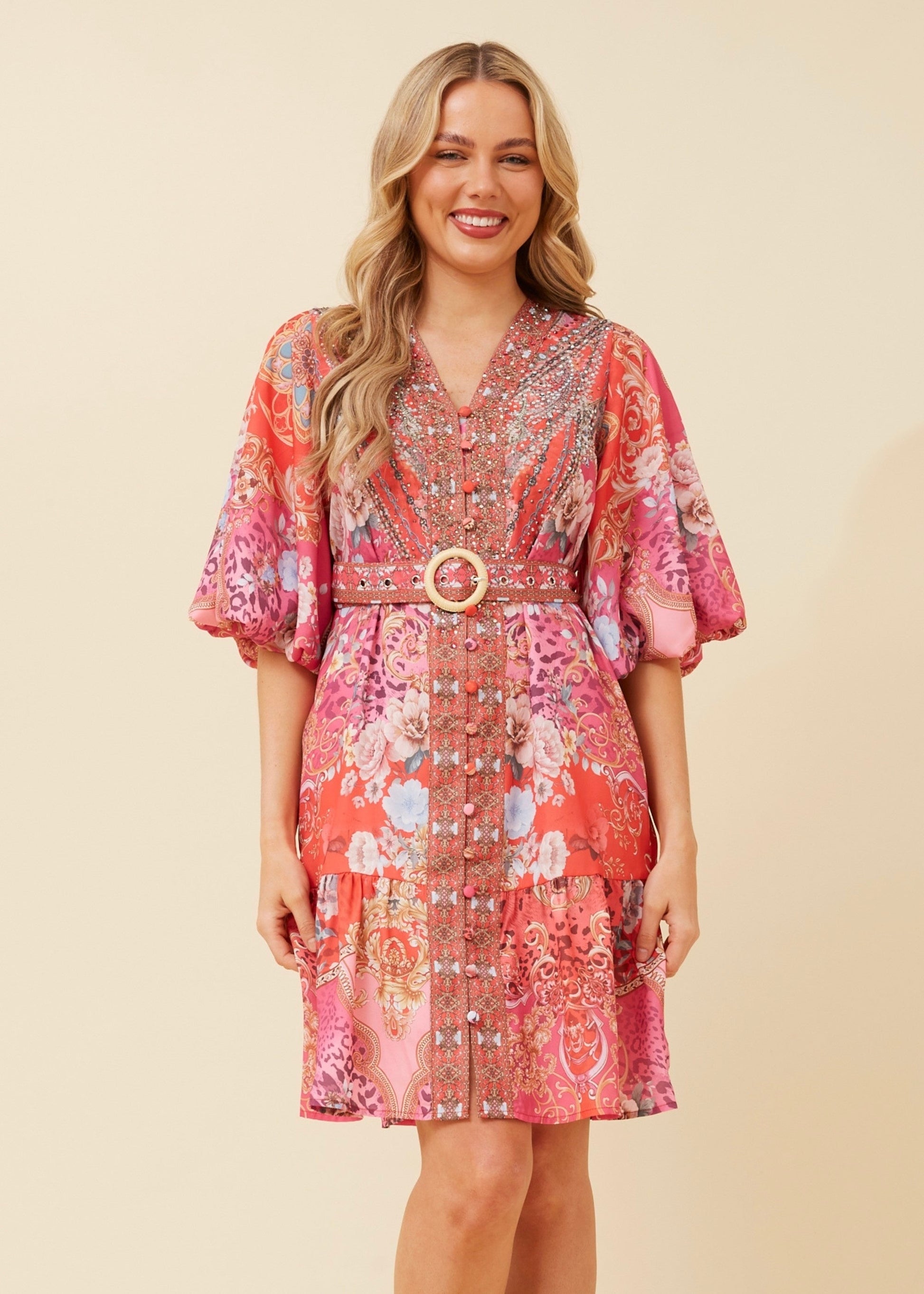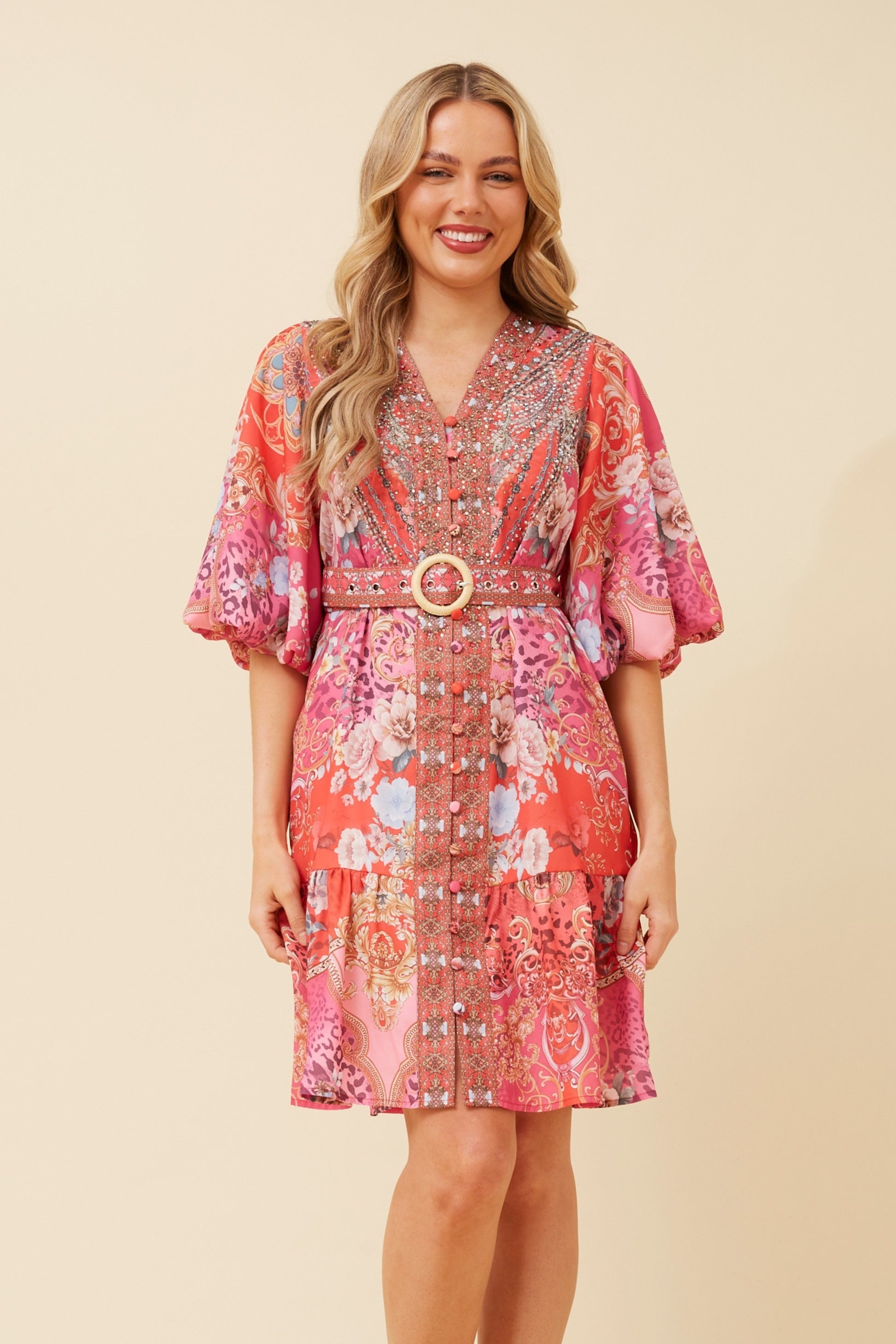 Designed for style and comfort, the MORTICIA MINI DRESS features a collared neck and button front detail. Complete with a tie belt for a flattering fit, this dress is perfect for any occasion. Elevate your wardrobe with this must-have piece.