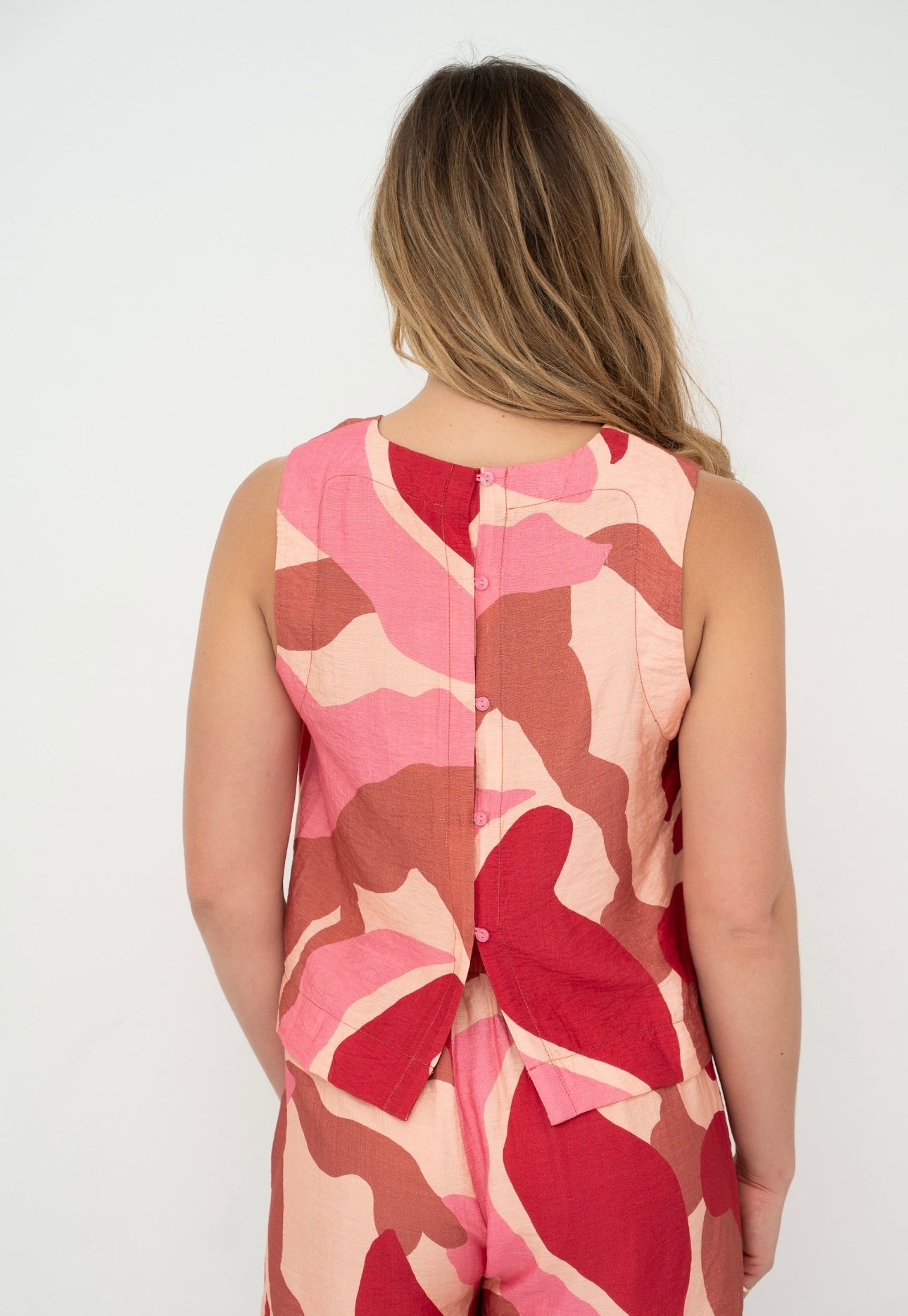 Elevate your style with the luxurious and exclusive JULIANA TOP. The round neckline and sleeveless design exude a sense of timeless elegance, while the vibrant summer print adds a touch of boho chic. Elevate your style with this luxurious and exclusive piece.