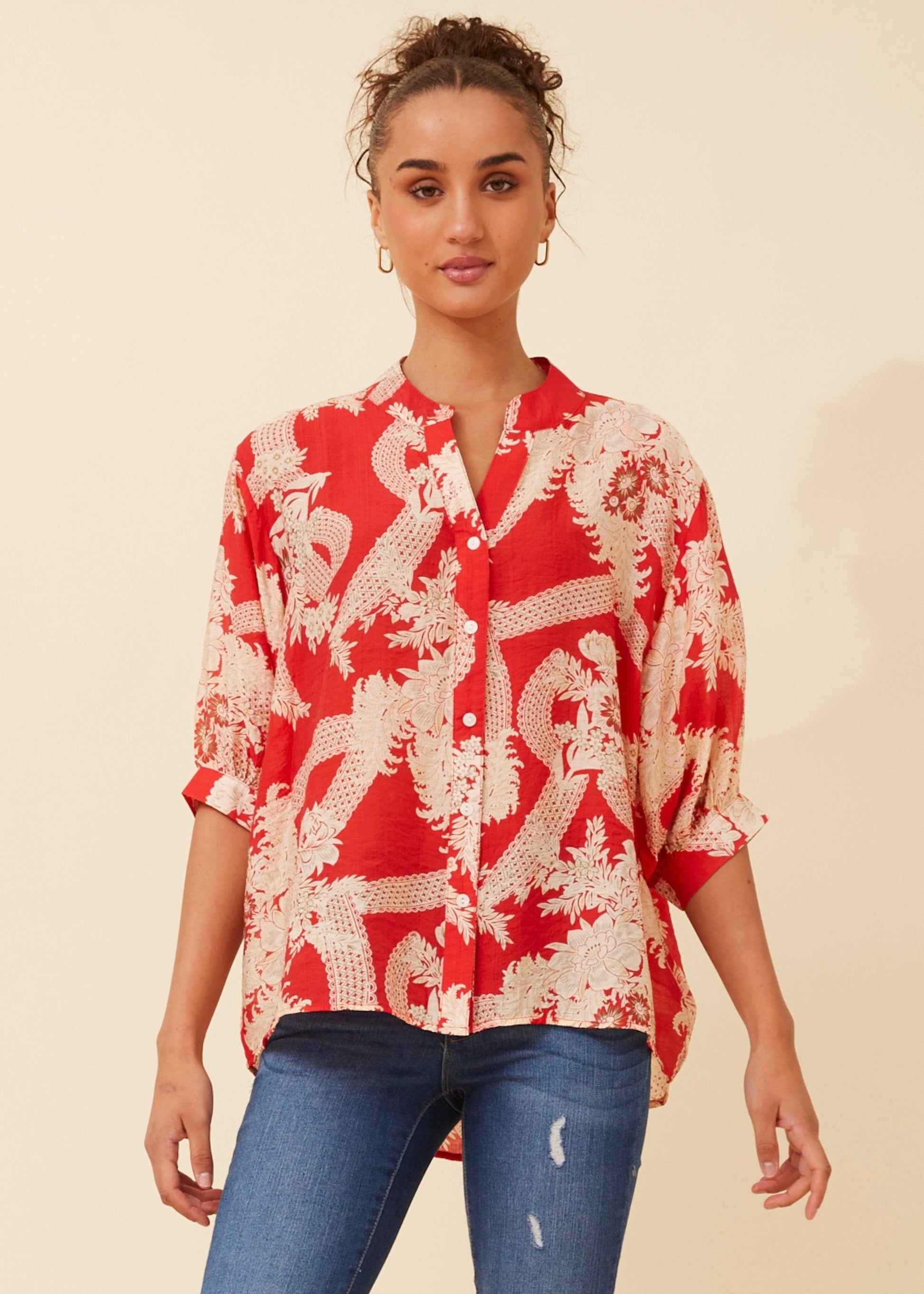 The TINA TOP is a versatile piece that features a classic button front and back detail, 3/4 sleeves, and a flattering V neck. Its relaxed look is perfect for any occasion. Upgrade your wardrobe with this timeless top.